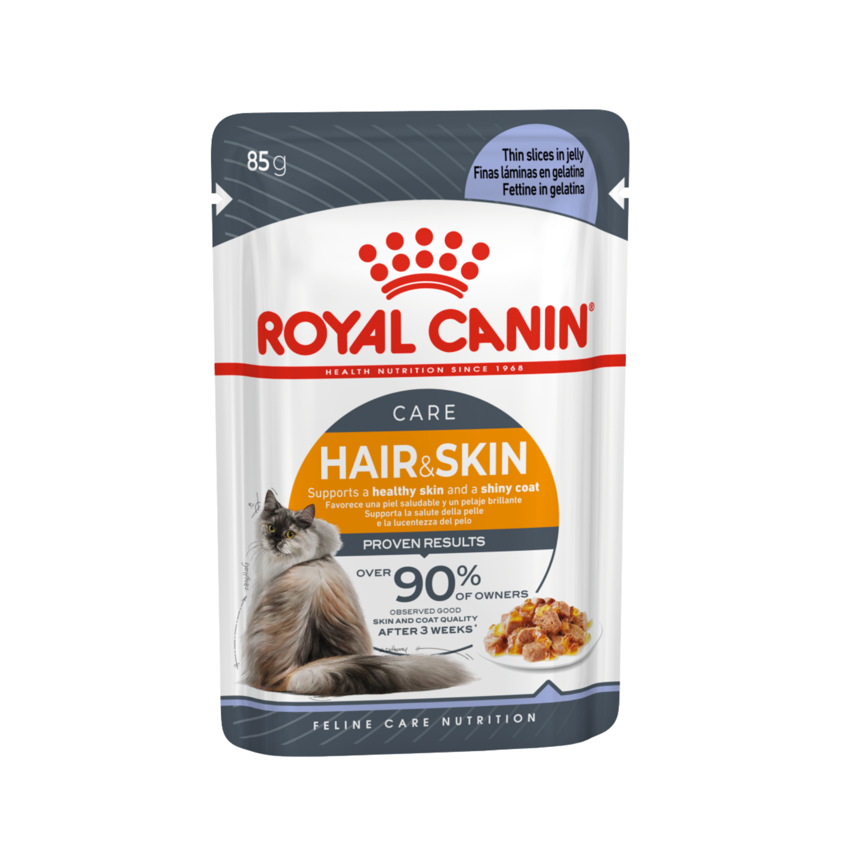 Bu formül, kedinizin derisini ve tüylerini içten dışa desteklemeye ve beslemeye yardımcı olmak için EPA ve DHA dahil olmak üzere omega-3 yağ asitleri ve omega-6 yağ asitleri içerir. ROYAL CANIN® Hair & Skin Care kanıtlanmış sonuçlara sahiptir. Çalışmamız*, sahiplerin %90'ından fazlasının, Hair & Skin Care beslenme programıyla (hem kuru mama hem de yaş mama formüllerini birleştiren) yalnızca 3 hafta beslendikten sonra iyi bir deri ve tüy kalitesi gözlemlediğini gösterdi. ROYAL CANIN® Hair & Skin Care ayrıca jöle şeklinde ve kuru mama olarak da mevcuttur. Hem yaş mama hem de kuru mamanın karışımı, kedilerin sevdiği çeşitliliği sağlar. *Royal Canin şirket içi çalışması