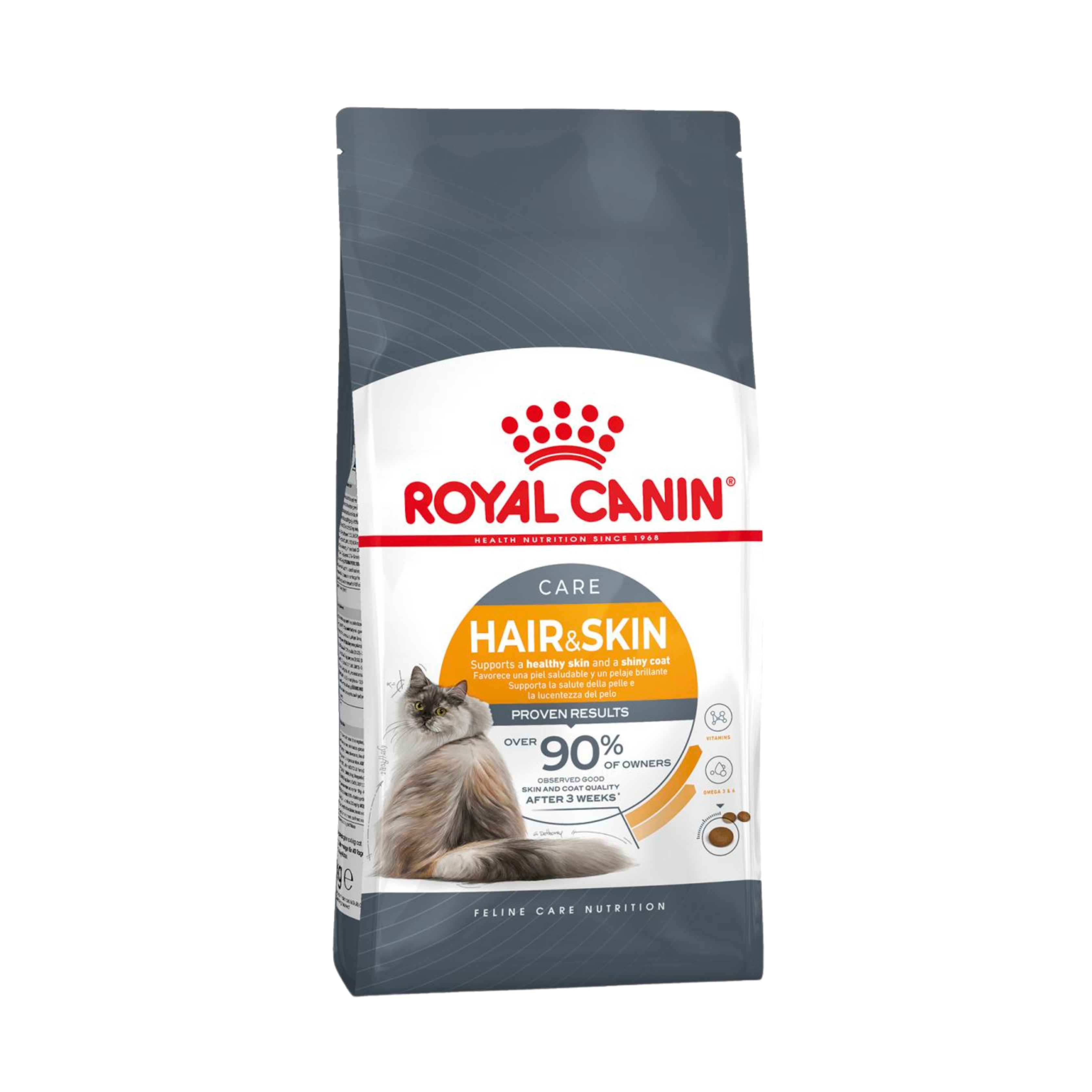 ROYAL CANIN® Hair & Skin Care, kedinizin deri ve tüy sağlığını desteklemek için özel olarak tasarlanmış, besin ögesi açısından eksiksiz ve dengeli bir formüldür. Bu formül, kedinizin derisini ve tüylerini içten dışa doğru desteklemeye ve beslemeye yardımcı olmak için GLA, EPA ve DHA dahil olmak üzere omega-3 ve omega-6 yağ asitleri içerir. Bu formüldeki vitaminlerin sinerjik karışımı, kedinizin derisinin onu çevreye karşı koruyan bariyer rolünü desteklemeye yardımcı olur. ROYAL CANIN® Hair & Skin Care, kanıtlanmış sonuçlara sahiptir. Çalışmamız* kedi sahiplerinin %90'ından fazlasının, kedilerini bu mama ile besledikten sadece 3 hafta sonra iyi bir deri ve tüy kalitesi gözlemlediklerini gösterdi.ROYAL CANIN® Hair & Skin Care ayrıca 2 farklı yaş mama olarak da mevcuttur: sos ve jöle. Hem yaş mama hem de kuru mamanın karışımı, kedilerin sevdiği çeşitliliği sağlar.