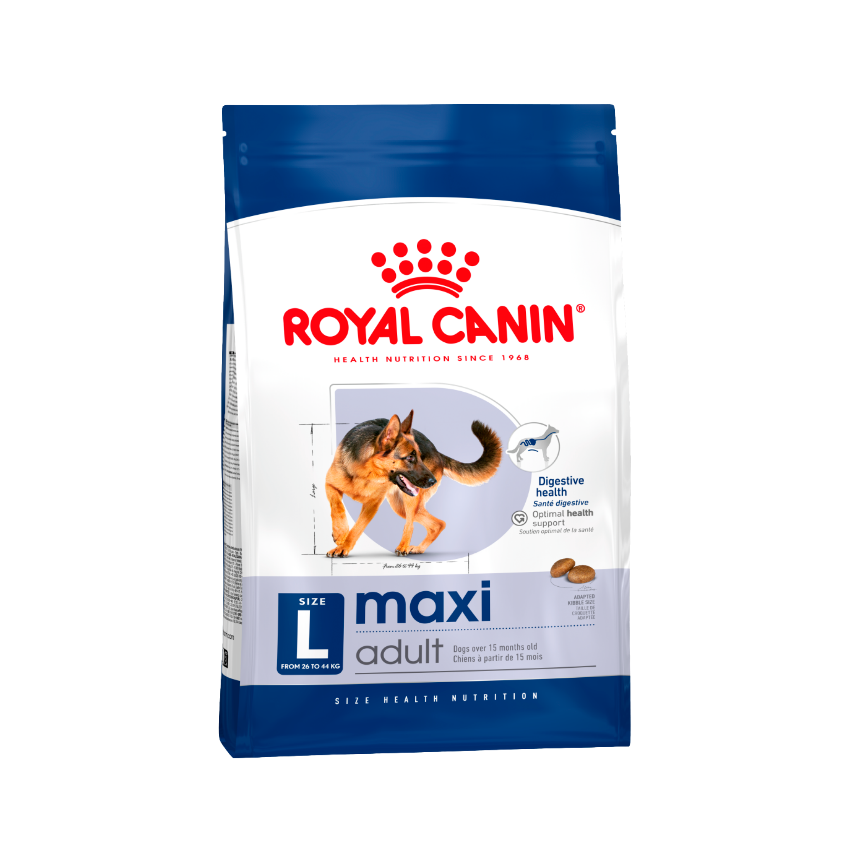 ROYAL CANIN® Maxi Adult, büyük köpeğinizin özel ihtiyaçlarını karşılamak ve onları yetişkinlik yılları boyunca desteklemek için özel olarak tasarlanmış, besin öğesi açısından eksiksiz ve dengeli bir formüldür. Bu diyet, ağırlığı 26 ila 44 kg arasında olan ve 15 aylıktan büyük büyük köpekler içindir. Daha uzun sindirim geçiş süreleri olan daha büyük köpekler, daha küçük ırklara kıyasla sindirim hassasiyetlerine daha duyarlıdır. Bu kuru mama, sindirim sağlığını desteklemeye yardımcı olmak için yüksek oranda sindirilebilir proteinler ve dengeli bir lif kaynağı içerir. Daha büyük köpekler vücut ağırlıklarının çoğunu eklemlerine verirler. Bu formül, sağlıklı kemik ve eklemlerin desteklenmesine yardımcı olmak için mineral ve besin maddelerinin bir kombinasyonu ile özel olarak hazırlanmıştır. Genel sağlığı desteklemek amacıyla maksimum emilim için vitaminler ve yüksek kaliteli besinlerin bir karışımı ile hazırlanmıştır. Mamanın benzersiz boyutu ve şekli, köpeğinizin kendine özgü çene yapısına uyacak şekilde uyarlandığı anlamına gelir ve onu, mamasını düzgün bir şekilde çiğnemeye teşvik etmeye yardımcı olur. ROYAL CANIN® Maxi Adult ayrıca yaş mama formülünde de mevcuttur: Soslu Parçalar. Yaş ve kuru mamayı karıştırmak köpeğinizin beslenmesine çeşitlilik katarak yemek zamanlarını daha ilginç ve ilgi çekici hale getirir.