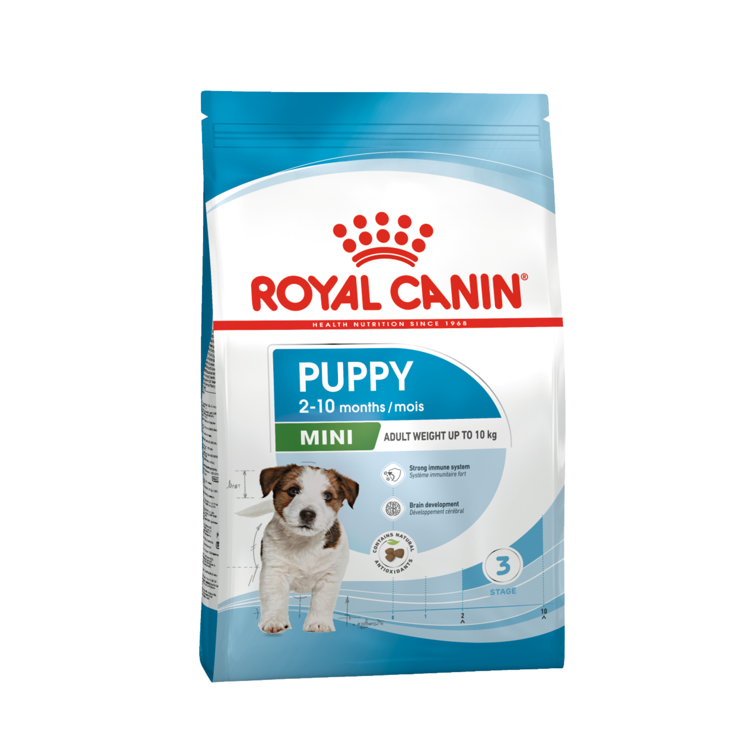ROYAL CANIN® Mini Puppy, küçük ırk yavru köpeklerin beslenme ihtiyaçlarını desteklemek için özel olarak formüle edilmiştir. Bu formül, 4-10 kg yetişkin ağırlığına erişmesi beklenen 2 ila 10 aylık yavru köpekler için uygundur. Bu özel formül, genç yavru köpeklerde sağlıklı beyin gelişimini desteklemeye yardımcı olduğu bilimsel olarak kanıtlanan (DHA gibi) Omega-3 yağ asitleriyle zenginleştirilmiştir. Formül, hızlı büyüyen küçük ırk yavru köpeklerin yüksek enerji ihtiyaçlarını karşılamak için tasarlanan optimal enerji içeriğine sahiptir. Bu formül, bağışıklık sistemleri hala gelişmekte olan yavru köpeklerin doğal savunmalarını desteklemeye yardımcı olduğu kanıtlanan Vitamin C ve E gibi besin öğelerini de içerir. Faydalı prebiyotikler (örneğin FOS, MOS ve pancar posası) ve çok yüksek sindirilebilirliği olan proteinler, sindirim sağlığı açısından bağırsak mikrobiyotasının (bağırsak florası) sağlıklı dengesini desteklemeye yardımcı olur. Yavru köpeğiniz, ROYAL CANIN® Mini Puppy’nin küçük çenesi için özel olarak tasarlanan tanelerini kolaylıkla kavrayabilir ve çiğneyebilir. Yavru köpeğiniz çiğnerken ortaya çıkan mekanik fırçalama etkisi diş sağlığının korunmasına yardımcı olur. Yavru köpeğiniz 10 aylık olduğunda, yetişkin bir köpek olarak beslenme ihtiyaçlarını karşılamak için özel olarak uyarlanan bir diyete ihtiyaç duyar. Bu aşamada, kuru mama ya da soslu yaş mama olarak sunulan ROYAL CANIN® Mini Adult’a geçebilirsiniz.