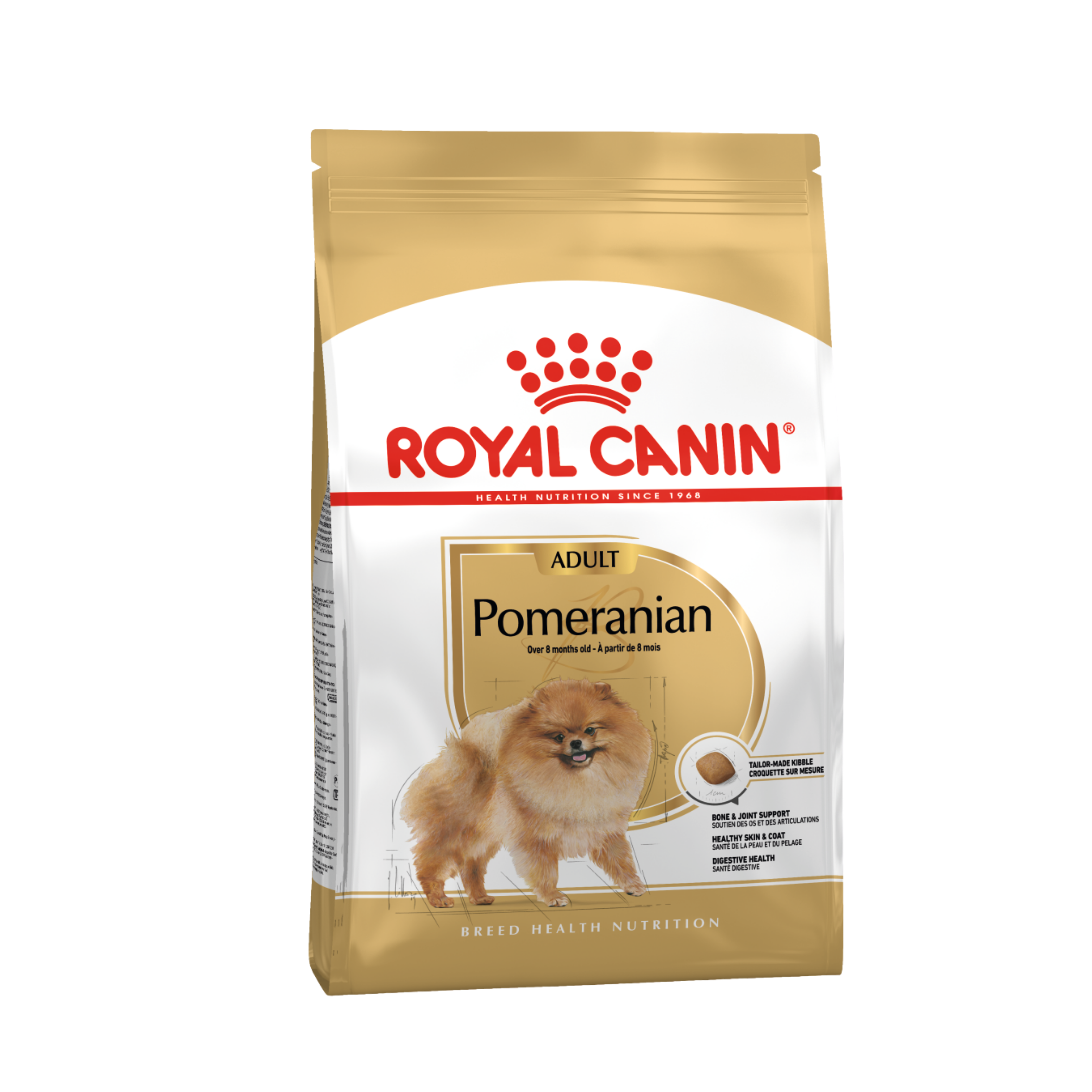 ROYAL CANIN® Pomeranian Adult, Pomeranian ırkı yetişkin köpekler için özel olarak üretilmiştir. ROYAL CANIN® Pomeranian Adult uyarlanmış mineral içeriği sayesinde köpeğinizin kemik ve eklem sağlığına katkıda bulunur. Bu formül köpeğinizin derisinin doğal bariyer görevini desteklemeye yardımcı olurken Pomeranian ırkı köpeğinizin göz alıcı tüylerini besler. Aynı zamanda içeriğinde bulunan yüksek sindirilebilirlikli proteinler sayesinde sindirim sistemi sağlığını destekler. Dengeli lif karışımı, sağlıklı bir bağırsak geçişi sağlar ve dışkı kalitesinin iyileştirilmesine destek olur. ROYAL CANIN® Pomeranian Adult, Pomeranian ırkı köpeklerin çene yapısına uygun boyutta, dokuda ve yoğunlukta tasarlanmış mama taneleri içerir. Her köpeğin iştahına hitap edebilmek için ROYAL CANIN® Pomeranian Adult mamasının aynı zamanda sos içinde taneler içeren yaş maması da mevcuttur. Köpeğinizin beslenmesinde kuru mama ve yaş mamanın faydalarını birleştirerek karışık beslenme sağlayabilirsiniz. Doğru beslenme sağladığınızdan emin olmak paket üzerindeki beslenme talimatlarını kontrol ettiğinizden emin olmanız önemlidir.