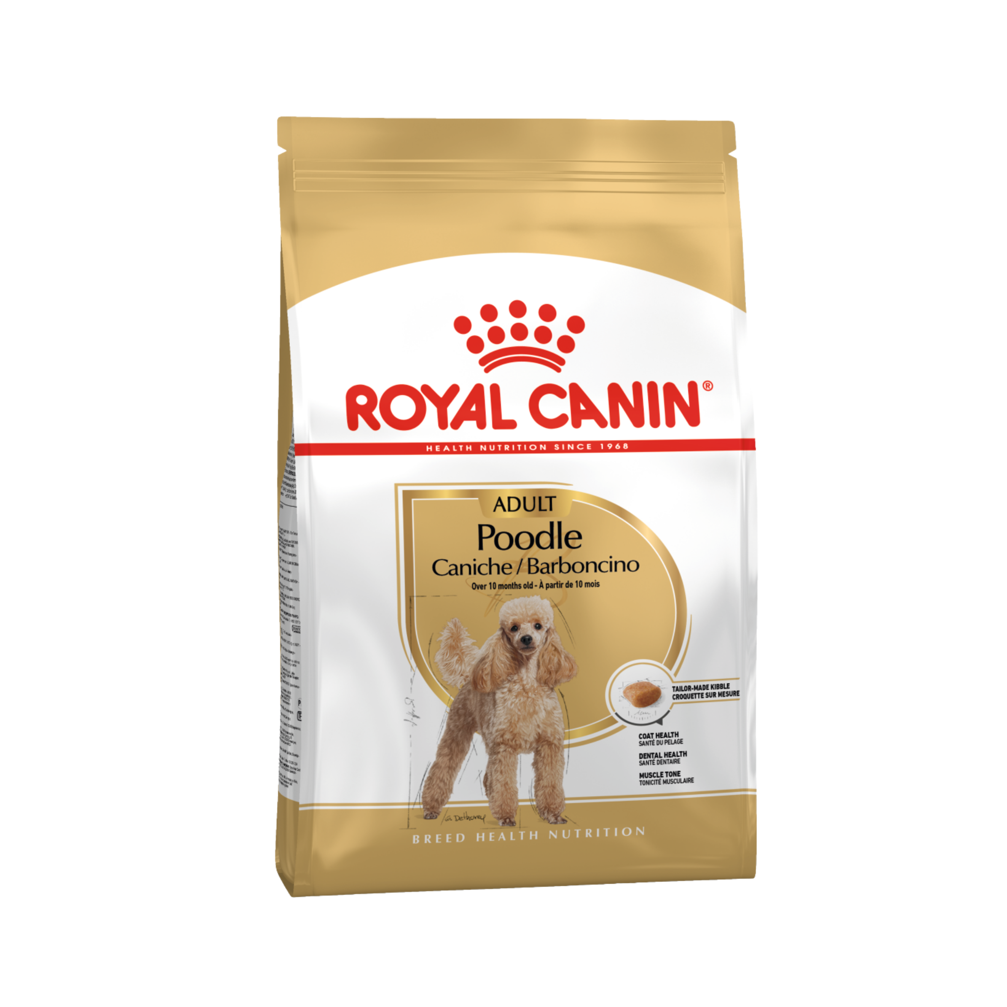 ROYAL CANIN® Breed Health Nutrition ürün gamı, ideal sağlığı korumak amacıyla her bir ırkın kendine özel beslenme ihtiyaçlarına yanıt verir. ROYAL CANIN® Poodle Adult, köpeğinizin tüm beslenme ihtiyaçları dikkate alınarak özel formüle edilmiştir. ROYAL CANIN® Poodle Adult, EPA ve DHA gibi Omega-3 yağ asitleri ile hodan yağı içerir. Bu besinler ve özel uyarlanmış protein içeriği, sağlıklı bir tüy büyümesinin desteklenmesine yardımcı olurlar. ROYAL CANIN® Poodle Adult, içerdiği kalsiyum şelatörleri sayesinde tartar oluşumunu ve yayılımını yavaşlatarak köpeğinizin diş sağlığını desteklemek için özel tasarlanmıştır. Bu formül, Poodle ırkı köpeğinizin kas tonusunun korunmasına da yardımcı olur. Her köpeğin bireysel tercihlerine yanıt verebilmek amacıyla, ROYAL CANIN® Poodle Adult, yumuşak ve lezzetli Loaf (katı kıvamda ezme ) kıvamıyla yaş mama olarak da bulunmaktadır. Karışık beslenme uygulamayı düşünüyorsanız, köpeğinizin ideal oranda ıslak ve kuru mama almasını sağlamak için beslenme yönergelerimizi inceleyin