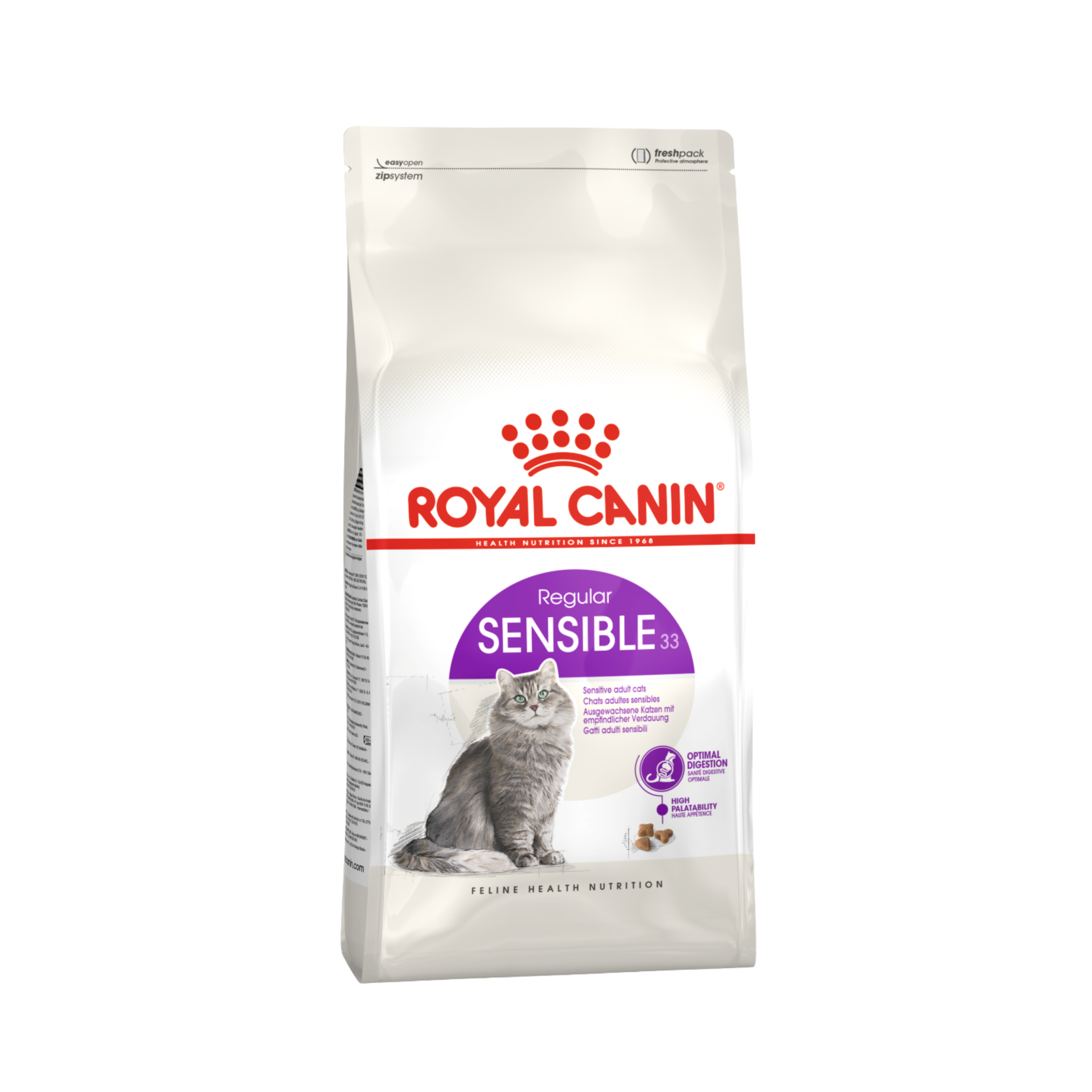 Hassas sindirim sistemi nedeniyle zor beğenen kedilerin beğenisini kazanmak üzere üç farklı mama tanesi biçimi özel aromalarla bir araya getirilir. SENSIBLE 33, 1 ila 7 yaş arası kedilere yöneliktir. Sindirim sağlığının korunmasına yardımcı olur. Bağırsak florası dengesini destekler. Son derece lezzetlidir.