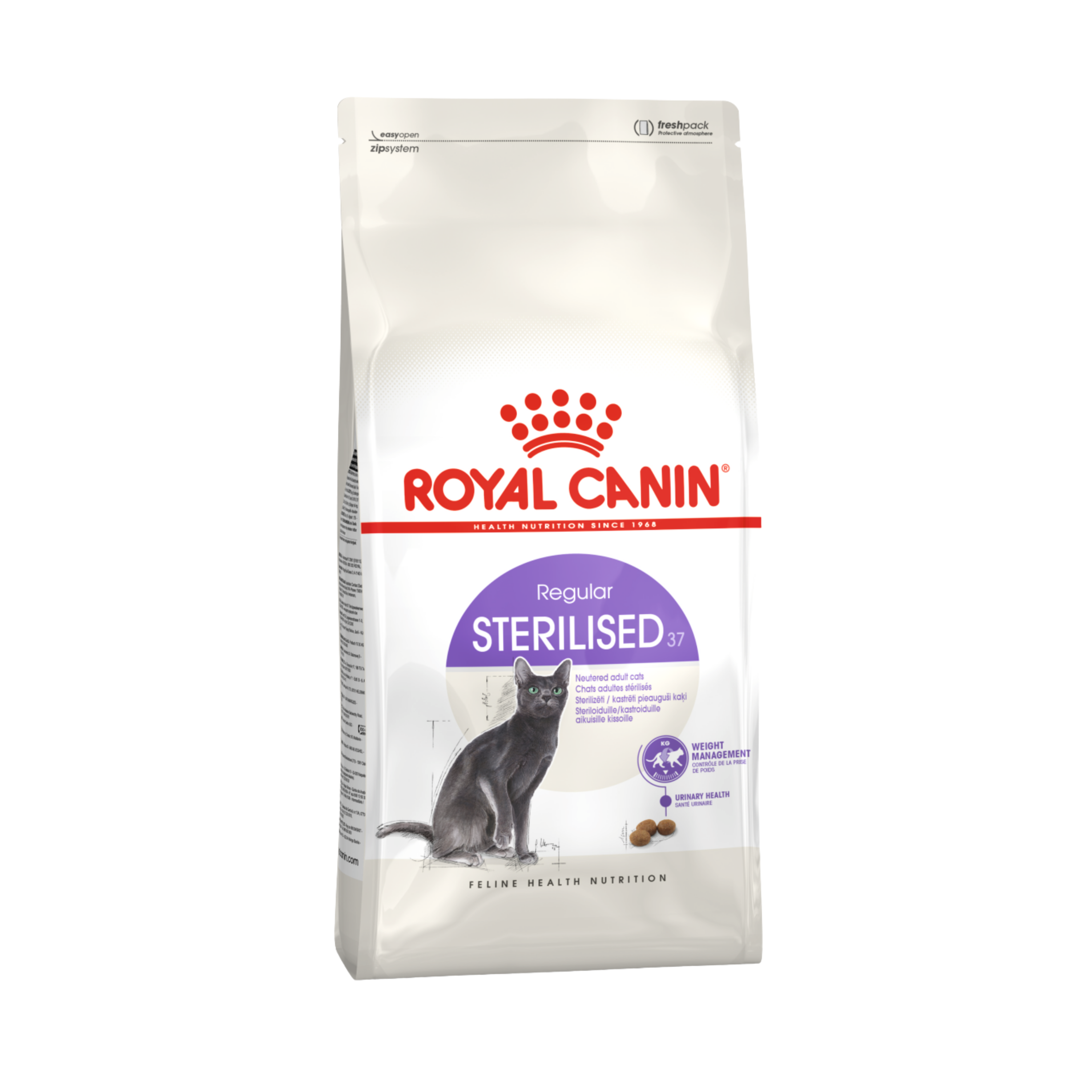 Kısırlaştırma sonrası kedilerin enerji ihtiyaçları azalır. Sterilised 37 orta derecede yağ düzeyi ve yeterli günlük porsiyonlar sayesinde aşırı kilo alımı riskini kısıtlamaya yardımcı olur.